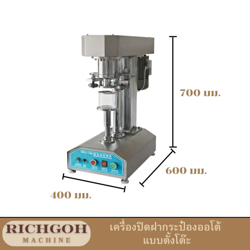 เครื่องปิดฝากระป๋องออโต้ แบบตั้งโต๊ะ เป็นอุปกรณ์ที่ออกแบบมาเพื่อปิดฝากระป๋องขนาดเล็กถึงกลางโดยอัตโนมัติ เหมาะสำหรับธุรกิจที่ต้องการเพิ่มประสิทธิภาพในการผลิตและลดต้นทุนแรงงาน โดยมีขนาดที่กะทัดรัดและใช้งานง่าย ทำให้เป็นตัวเลือกที่น่าสนใจสำหรับธุรกิจขนาดเล็กถึงกลาง