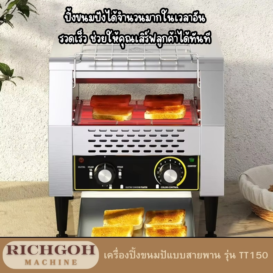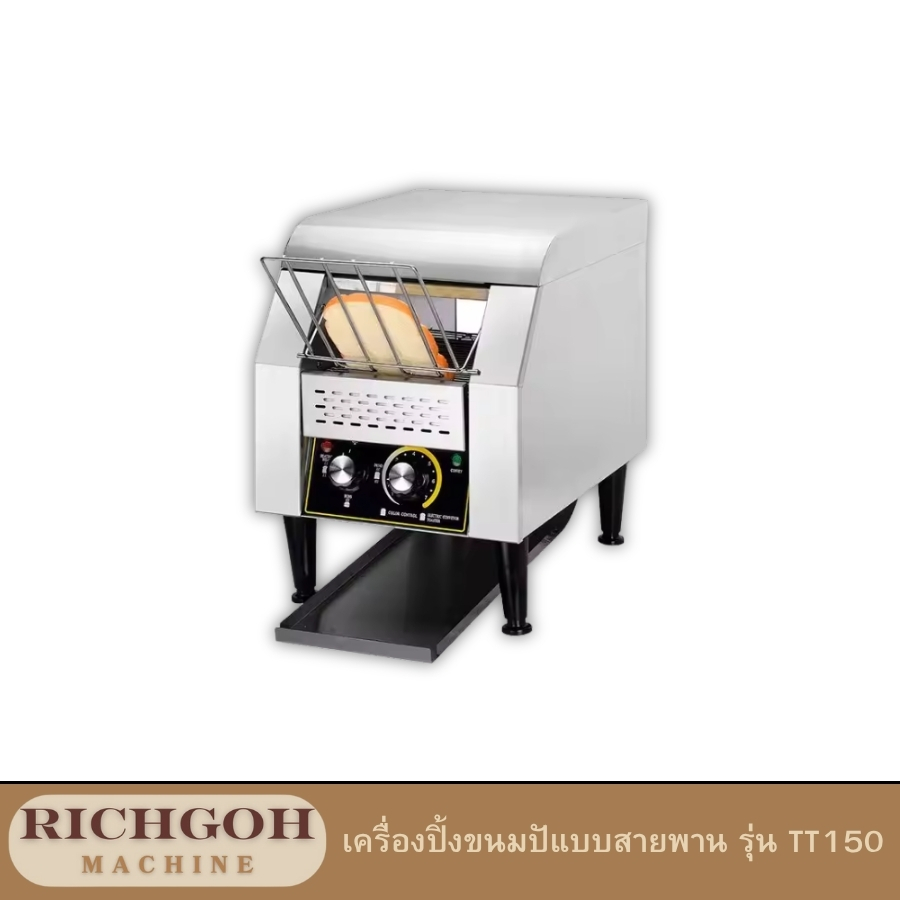 - ใช้งานง่าย: ควบคุมการทำงานได้ง่าย เพียงแค่ใส่ขนมปังลงบนสายพาน ไม่ซับซ้อน