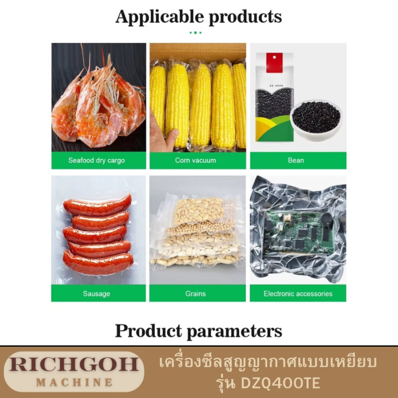 • สำหรับซีลสูญญากาศ ถนอมอาหาร หรือซีลแบบเติมลมไนโตรเจนได้
