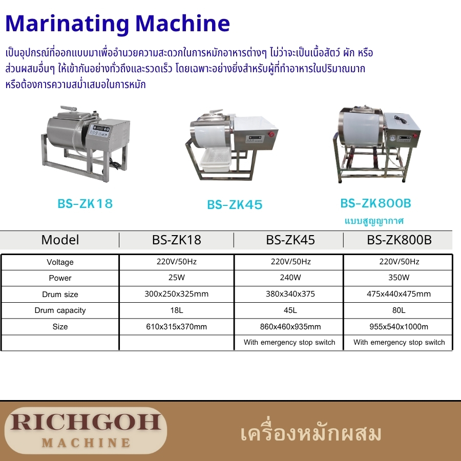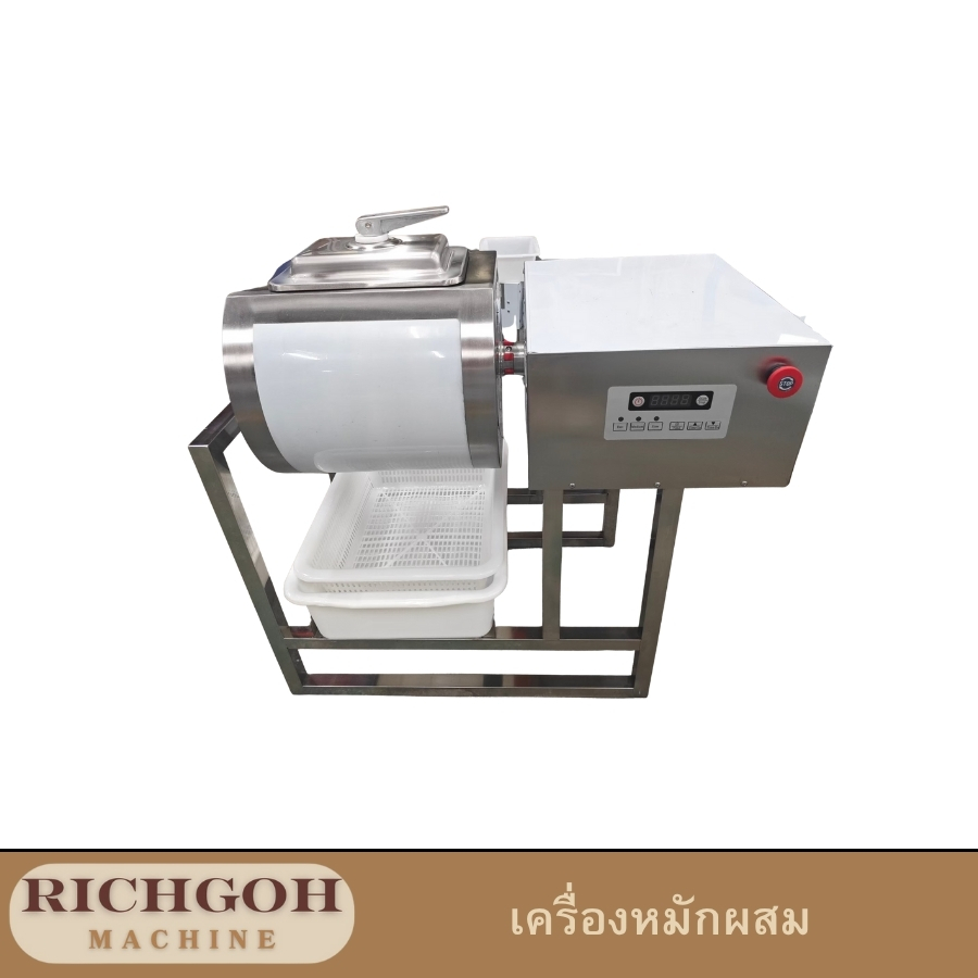 เครื่องหมักผสม เป็นอุปกรณ์ที่ออกแบบมาเพื่ออำนวยความสะดวกในการหมักอาหารต่างๆ ไม่ว่าจะเป็นเนื้อสัตว์ ผัก หรือส่วนผสมอื่นๆ ให้เข้ากันอย่างทั่วถึงและรวดเร็ว โดยเฉพาะอย่างยิ่งสำหรับผู้ที่ทำอาหารในปริมาณมาก หรือต้องการความสม่ำเสมอในการหมัก เครื่องหมักผสมนี้มีขนาดความจุหลากหลายลิตร ขนาด 45 ลิตร และ แบบสูญญากาศ ซึ่งเหมาะสำหรับการใช้งานทั้งในครัวเรือนและเชิงพาณิชย์ ขนาดจำนวนลิตรที่มากกว่านั้นจะเหมาะกับการผลิตเชิงพาณิชย์