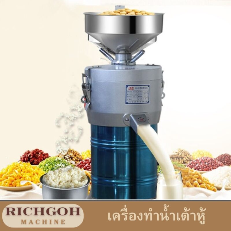 จากภาพที่เห็นเป็นเครื่องที่มีระบบการ โม่แยกกาก โดยเฉพาะ ซึ่งแตกต่างจากเครื่องปั่นทั่วไปที่อาจจะไม่ได้แยกกากออก ทำให้ได้น้ำนมที่ข้นกว่าและมีกากผสมอยู่ แต่เครื่องรุ่นนี้จะช่วยให้คุณได้น้ำเต้าหู้ที่เนียนนุ่มและดื่มง่ายกว่ามาก อีกทั้งกากถั่วเหลืองที่ได้จากการแยกก็ยังสามารถนำไปแปรรูปเป็นเมนูอื่น ๆ ได้อีกด้วย ทำให้ใช้ประโยชน์จากวัตถุดิบได้อย่างคุ้มค่าที่สุด