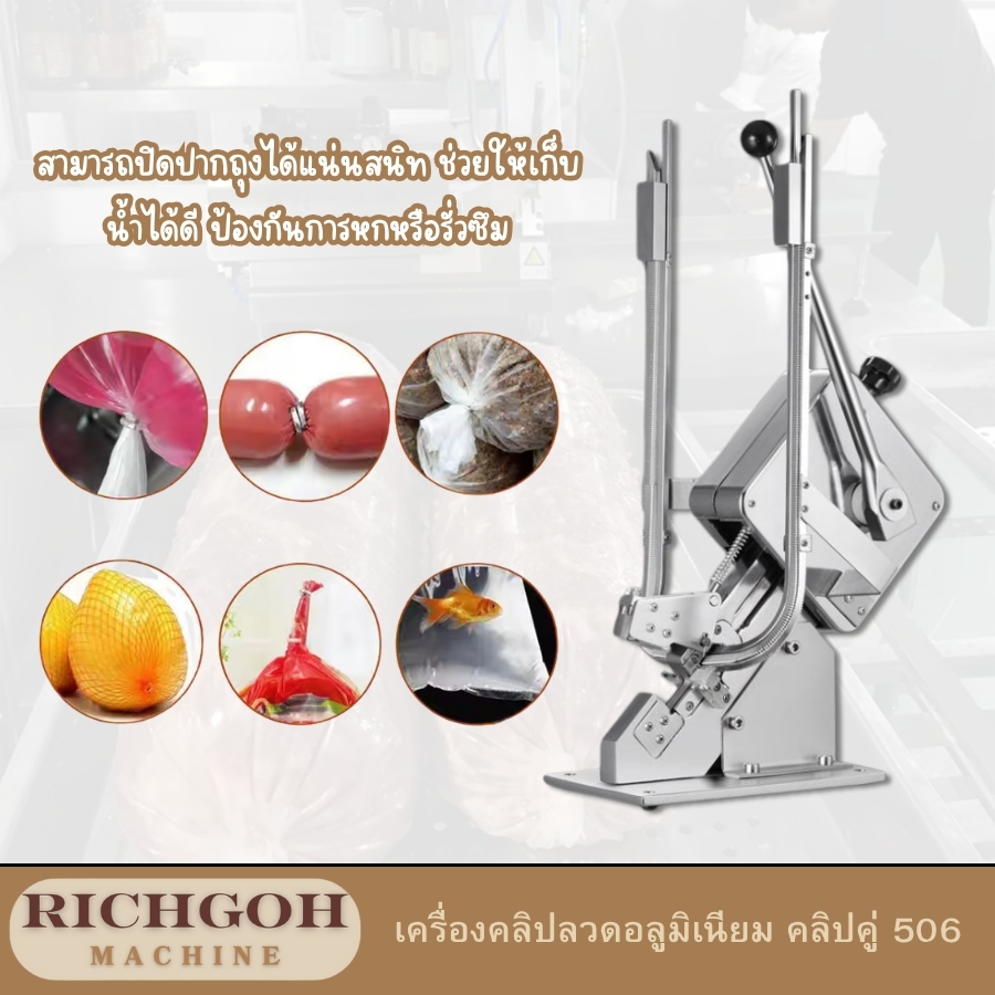 เครื่องคลิปปากถุงมือโยก เครื่องรัดลวด เครื่องรัดปากถุงแหนม เครื่องรัดถุงลูกชิ้น เครื่องรัดปากถุงสำหรับแหนม ไส้กรอก ลูกชิ้น ไก่แช่แข็ง