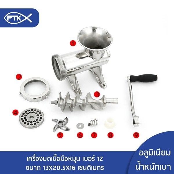 เครื่องบดเนื้อมือหมุน เบอร์ 12 22 32 ตัวช่วยสำคัญในครัวของคุณ ยกระดับการทำอาหารของคุณให้ง่ายและสะดวกขึ้นด้วยเครื่องบดเนื้อมือหมุน อุปกรณ์คู่ครัวที่คุณต้องมี! ไม่ว่าจะเป็นการเตรียมวัตถุดิบสำหรับอาหารจานโปรดในบ้าน หรือสำหรับธุรกิจร้านอาหาร เครื่องบดนี้พร้อมช่วยคุณประหยัดทั้งเวลาและแรง