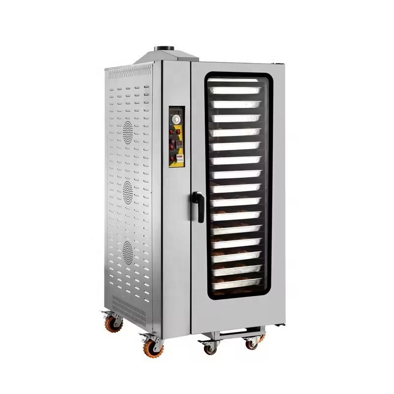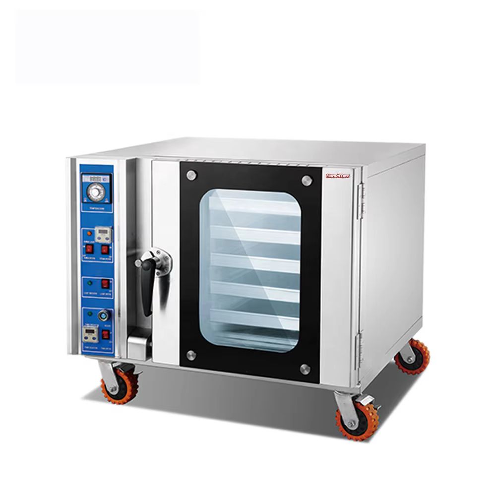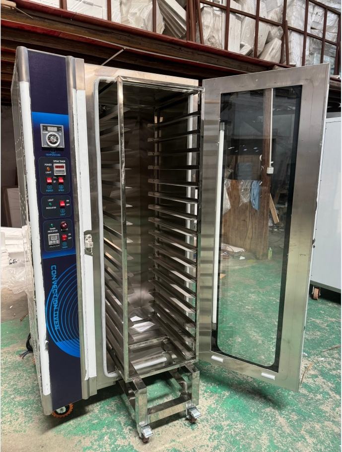เตาอบลมร้อนอุตสาหกรรมนี้มีการออกแบบพัดลมและมอเตอร์ขนาดใหญ่ การอบด้วยการหมุนเวียนอากาศ และฟังก์ชั่นไอน้ำสำหรับการทำอาหารอย่างสม่ำเสมอ ติดตั้งประตูกระจกทนความร้อนแบบสองชั้น มีไฟภายใน และชั้นอบเคลื่อนที่ได้ ทำให้มั่นใจในประสิทธิภาพและความปลอดภัย